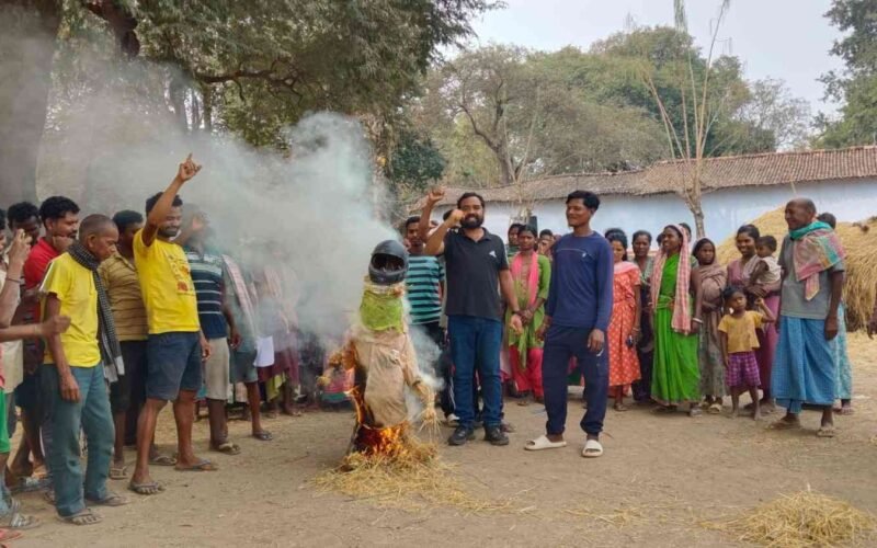 लामजारी में चेक डैम निर्माण में अनियमितता का आरोप, ग्रामीणों ने ठेकेदार का पुतला दहन