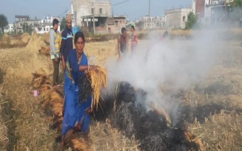 धातकीडीह में किसान का धान जलकर राख, अज्ञात व्यक्तियों पर आग लगाने का संदेह