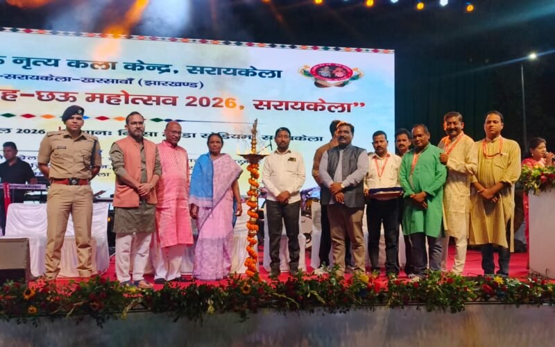 सरायकेला | बिरसा मुंडा स्टेडियम में आयोजित तीन दिवसीय राजकीय चैत्रपर्व सह छऊ महोत्सव-2026 का भव्य उद्घाटन शनिवार को हुआ। कार्यक्रम का शुभारंभ सिंहभूम की सांसद जोबा माझी ने दीप प्रज्वलित कर किया।