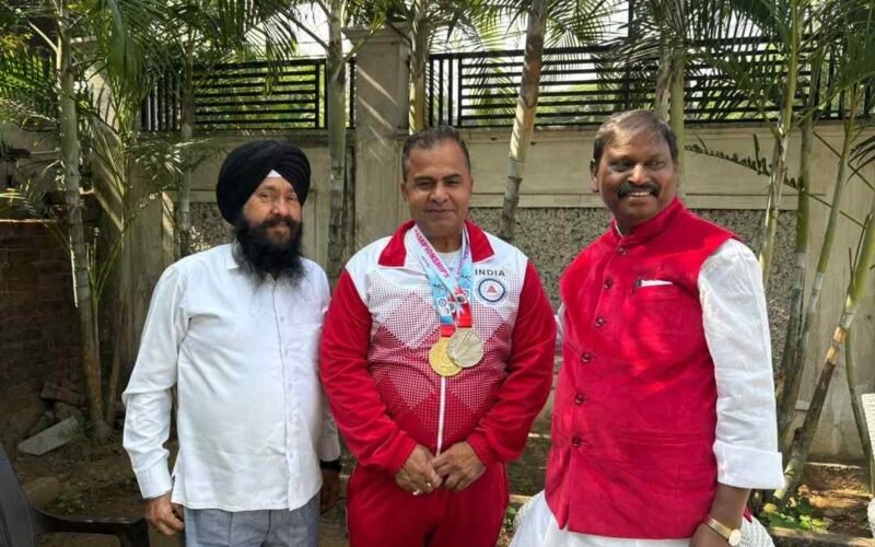 घोड़ाबांधा में अर्जुन मुंडा ने एशियन मास्टर्स चैम्पियन श्री एस. के. तोमर को दी बधाई