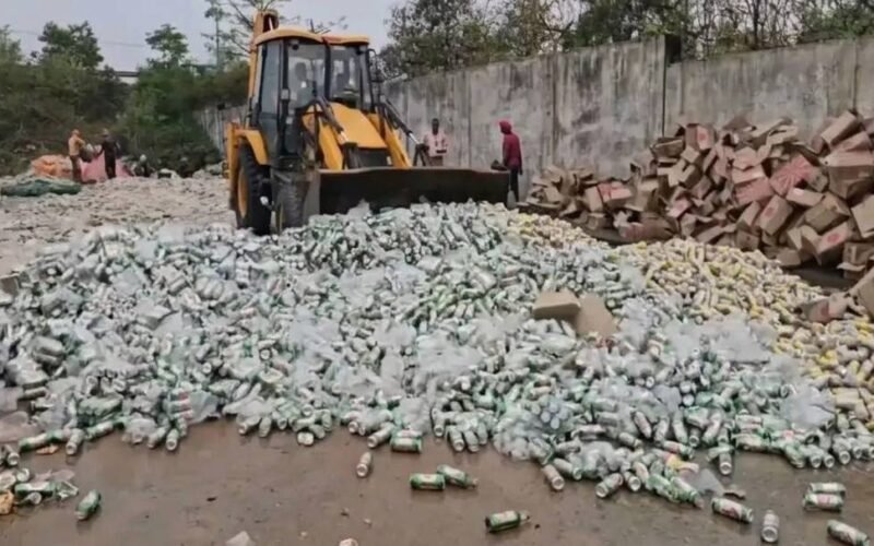 हजारीबाग में 50 लाख की एक्सपायरी बियर पर चला बुलडोजर, 1800 पेटी नष्ट