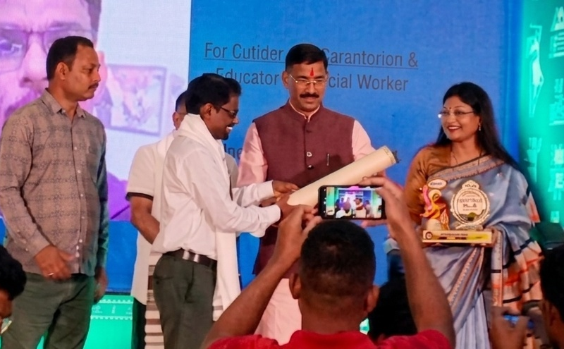 रांची | राजधानी रांची स्थित ऑड्रे हाउस में आयोजित एक भव्य समारोह में सरायकेला-खरसावां जिले के वरिष्ठ शिक्षक, राज्य स्तरीय प्रशिक्षक, मोटिवेटर एवं समाजसेवी तरुण कुमार सिंह को “झारखंड श्री” पुरस्कार से सम्मानित किया गया। यह सम्मान उन्हें देश के रक्षा राज्य मंत्री संजय सेठ के हाथों प्रदान किया गया। इस दौरान उन्हें प्रशस्ति पत्र, शॉल एवं मोमेंटो देकर सम्मानित किया गया।